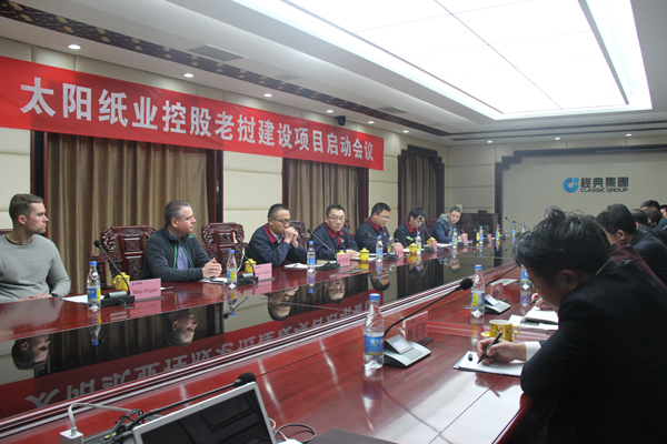 3月9日,太陽紙業老撾建設項目啟動會議在經典集團會議中心召開。太陽紙業老撾建設項目總監萬盛舉,奧地利監造公司高級技術顧問Wojciech Szpura,經典建設公司董事長周超,經典集團副總經理鄭建康,生產總監王忠策及相關技術管理人員出席會議。