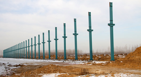 集團公司生產車間二期工程正式立柱開工
